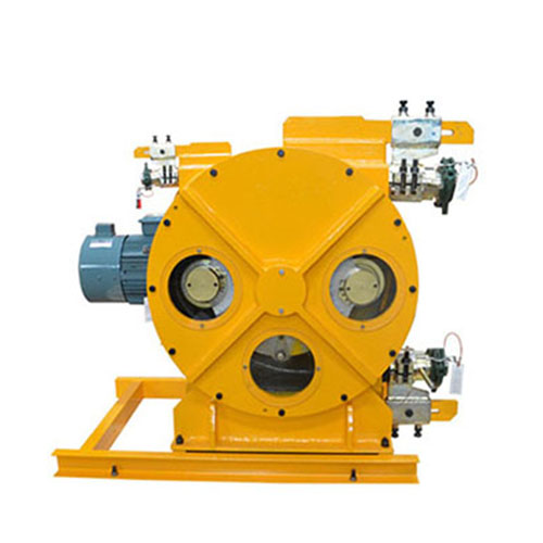 GH65 series foam concrete pouring hose pump (squeeze pump) consists mainly of pump house, rotor, roller, idle roller, squeeze tube and driving unit. The squeeze hose is U-shape in pump house, when rotor drives roller to rotate, hose is deformed. After the roller rotate, the deformed hose recover by its elasticity. Thus the negative pressure in this hose is generated, sucking slurries, and discharging through outlet under roller’s push, finally forms pressure conveying of slurries.
